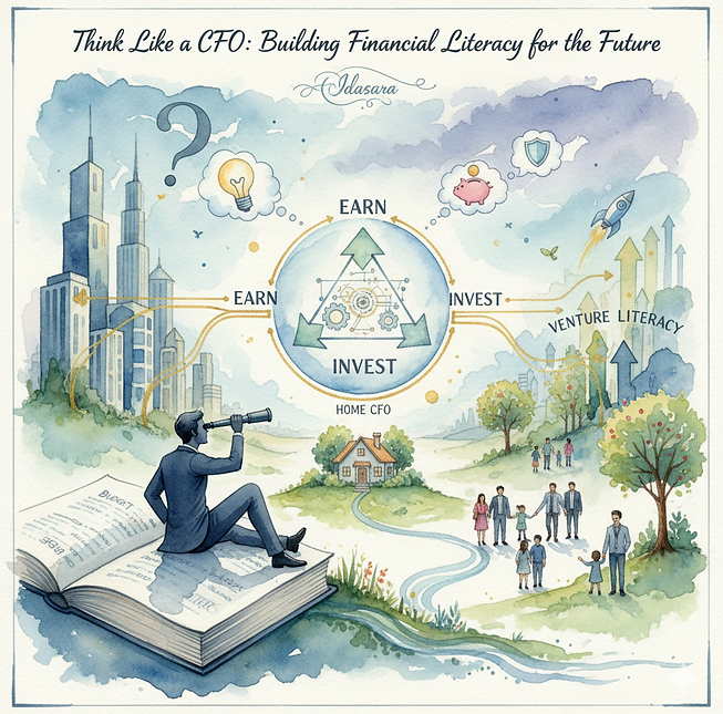 At Idasara, we teach people to earn, save, and invest — but more importantly, to align those actions with personal purpose. Through our workshops, micro-VC programs, and AI-assisted tools, we help individuals see that finance is not a department of life; it is the infrastructure of possibility. Our Home CFO, Venture CFO, and AI CxO Agent models are designed to evolve with each stage of the learner’s journey — from household budgeting to startup scaling. When people learn to think like CFOs, they become stewards of their own futures, not subjects of circumstance.